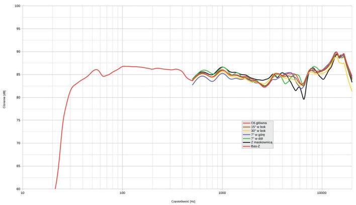Uzyskanie bardzo dobrej liniowości na osi głównej jest zadaniem znacznie łatwiejszym do uzyskania nawet dla średnio doświadczonego konstruktora, natomiast ustabilizowanie jej choćby w niewielkim (ale w praktyce wystarczającym) zakresie kątów jest o wiele trudniejsze. Tylko dla dopełnienia formalności podajemy, że oś główna została wyprowadzona zgodnie z regułami pomiędzy głośnikiem nisko-średniotonowym a wysokotonowym, na praktycznej wysokości 95 cm.
