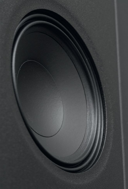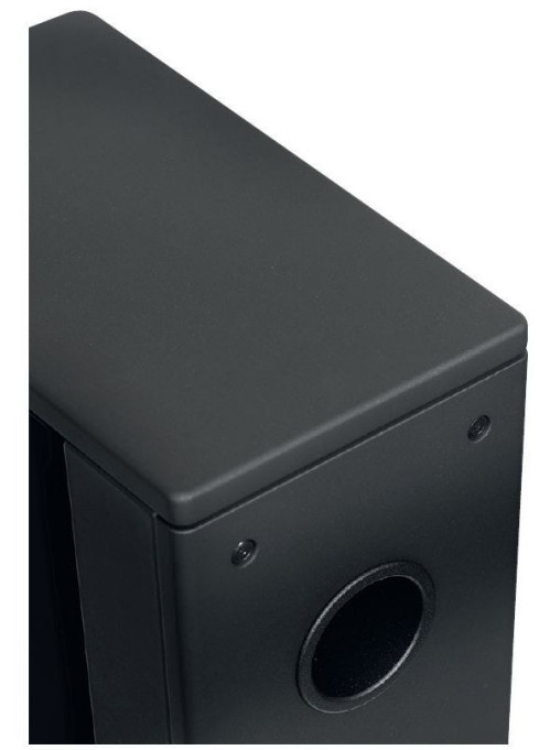 Na froncie nie widać żadnych mocowań przetworników i nie są one tylko zakryte tym panelem, bowiem jest on ściśle związany z obudową, a głośniki są do niego mocowane od tyłu; dlatego odkręcana jest tylna ścianka i widać na niej tuzin śrub.