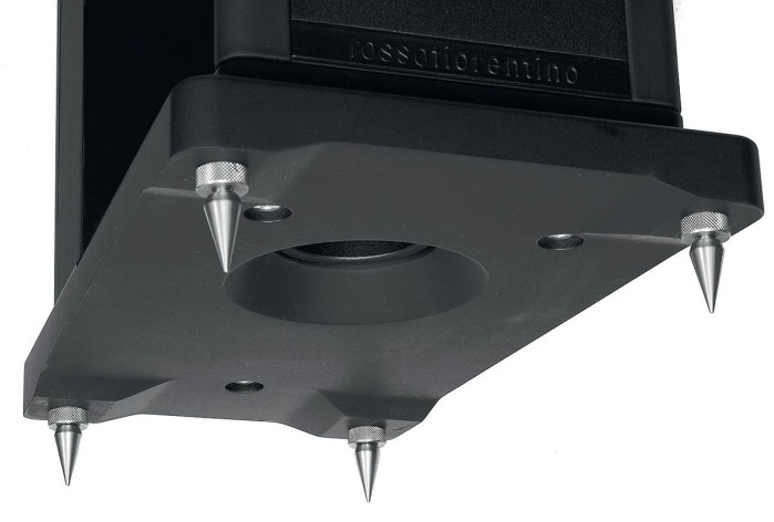 Okolice mocowana kolców są wyższe o 6 mm, więc ostatecznie i bez kolców ciśnienie się wydostanie (o ile nie postawimy kolumn na dywanie), chociaż w takiej sytuacji najpewniej masa powietrza znajdująca się w 6-mm szczelinie pomiędzy podłogą a dolną ścianką połączy się z masą powietrza w tunelu i obniży częstotliwość rezonansową – zaangażowani w takie eksperymenty audiofile będą mieli okazję się pobawić (chociaż trudno im będzie pogodzić się z faktem, że kolumna nie stoi na kolcach).