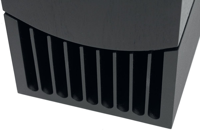 Duży czarny element, formujący "laminarny" wylot linii transmisyjnej (to jeden z punktów technicznego programu Prophecy) jest stalowy i pełni równocześnie rolę balastu – "kotwicy". Dzięki pozbyciu się elementów zewnętrznych względem bryły obudowy wygląda ona jeszcze bardziej awangardowo, a zarazem minimalistycznie – naprawdę bardzo fajnie.