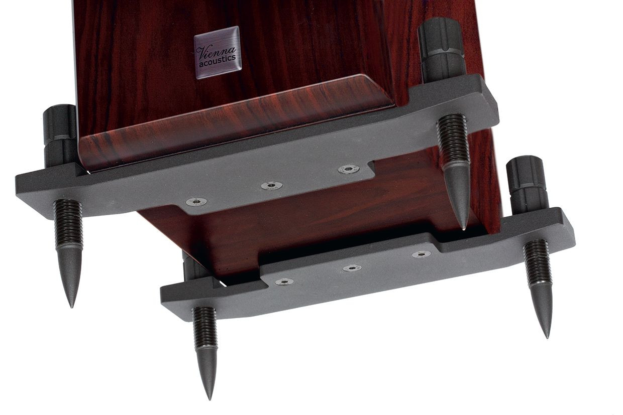 Zastosowanie podpór rozstawiających szerzej punkty podparcia ani trochę nie dziwi, ale wysokość kolców (6 cm) jest niezwykła. Producent nie tłumaczy powodów takiej ekstrawagancji, jednak pomiary wskazują, że dzięki nim oś optymalnej charakterystyki została korzystnie podniesiona do góry. W tym celu można też spróbować lekko pochylić kolumny do tyłu.