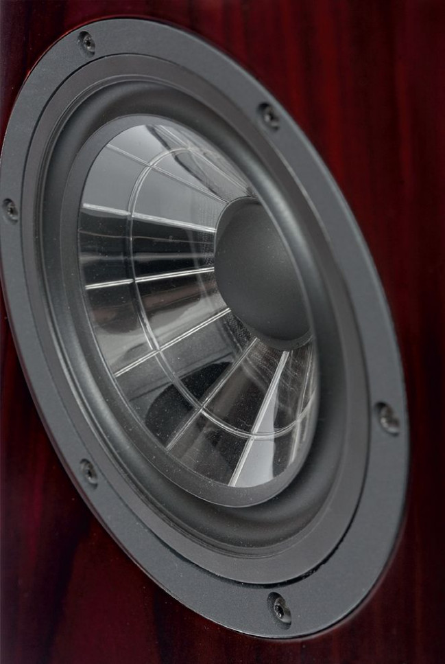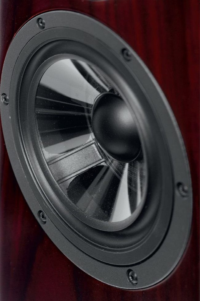 Materiał obydwu to X3P, czyli mieszanka różnego rodzaju polipropylenów, ale profil górnej (nisko-średniotonowej) jest typowy, gładki, natomiast dolna (niskotonowa) jest wzmocniona od spodu "pająkiem" – koncentrycznymi i promienistymi pogrubieniami. Trochę zwiększają one masę, ale przede wszystkim poprawiają sztywność, co jest istotne w przetwarzaniu niskich częstotliwości, ale prawdopodobnie niekorzystnie zmienia charakterystykę w zakresie średnich – dlatego pająka nie ma w górnym głośniku.