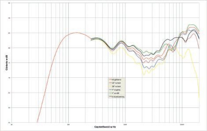 Aby jednak nie pogłębiać tego efektu, lepiej trzymać się kierunku -7O, a więc siedzieć nisko (a monitorki trzymać na wysokich podstawkach), a jeżeli to niemożliwe... to odwrócić je do góry nogami. Maskownica ma nawet korzystny wpływ - wyrównuje charakterystykę w zakresie wysokich częstotliwości. Spadek -6 dB na basie pojawia się przy 55 Hz, a czułość wynosi 83 dB.