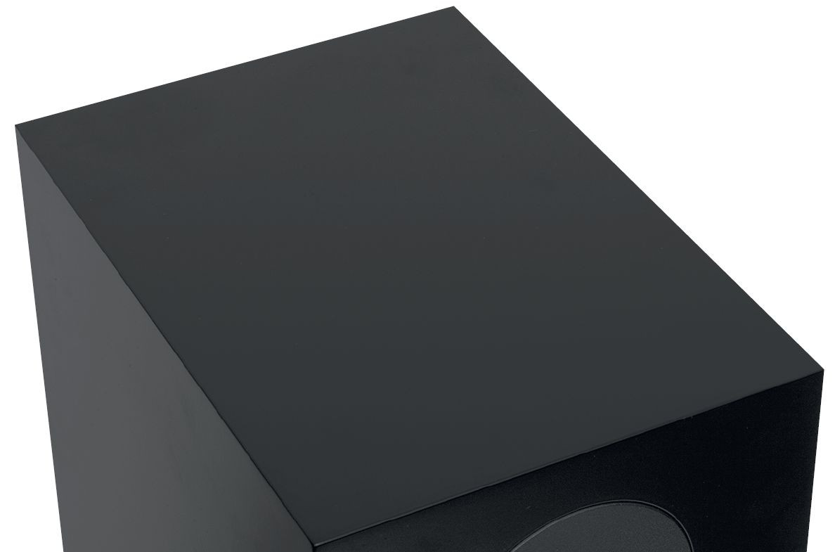 Obudowa jest solidnie powzmacniana wieloma wieńcami nie tylko w poziomie, ale i w pionie, średniotonowy oczywiście ma wydzieloną własną komorę. Komora niskotonowego jest zaskakująco mocno wytłumiona (jak na bas-refleks), czego skutki widzimy i omawiamy w Laboratorium. Jak można się domyślać, widząc prześwit między właściwą obudową a cokołem (utworzony przez trzy walce – jeden z przodu, dwa z tyłu), tędy dookoła "dmucha" bas-refleks.