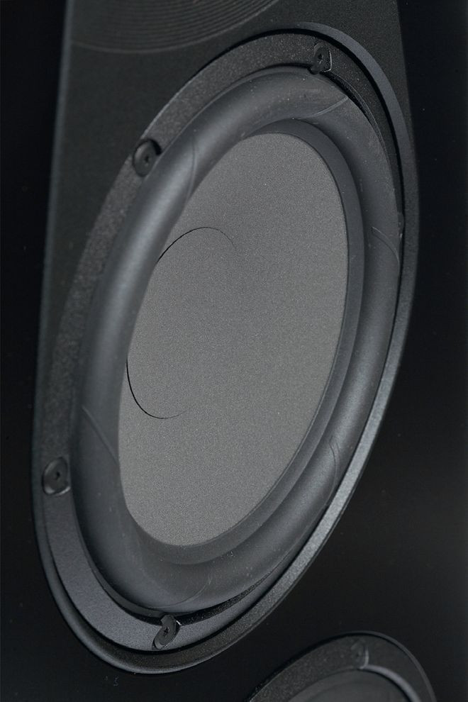 Obydwa głośniki mają membrany celulozowe z wklęsłymi nakładkami przeciwpyłowymi o ciekawej, matowej powierzchni – to efekt pokrycia tlenkiem ceramicznym (Nextel). Zawieszenia mają bruzdy, średniotonowy – pięć, niskotonowy – osiem, ale producent nie wspomina o właściwościach takiego ich udoskonalenia.
