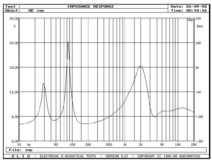 Z określeniem impedancji znamionowej Evo 3 nie wiążą się żadne dylematy minimum przy 150-200Hz leży na poziomie 4Ω (rys. 1). Można jednak zwrócić uwagę, że ponieważ ani tam, ani też nigdzie indziej nie spada ani o ułamek oma niżej, Evo 3, chociaż znamionowo 4-omowe, mogą okazać się wcale nietrudnym obciążeniem, nawet dla amplitunerów teoretycznie znoszących tylko 6lub 8omowe głośniki. Silna zmienność w okolicach 2-4kHz wskazuje na zastosowanie filtrów o dużym nachyleniu, również od strony głośnika wysokotonowego.