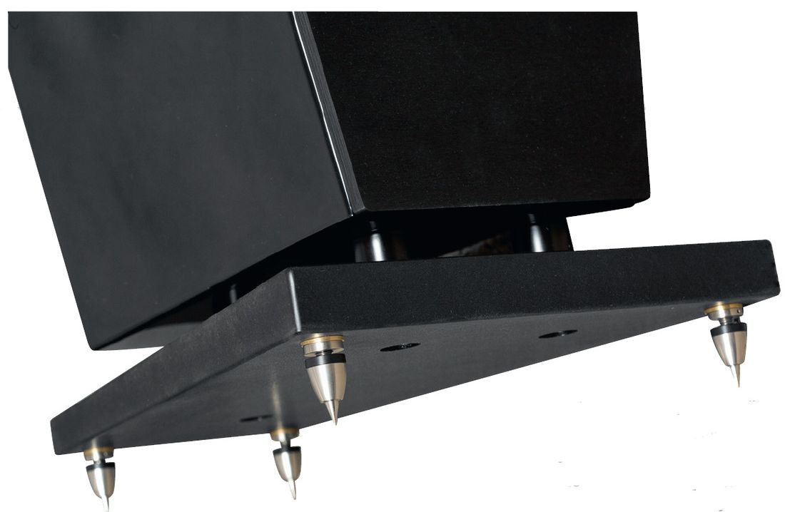 Jedyne obiekcje estetyczne (moje osobiste) mam wobec cokołu, a dokładnie jego wyraźnego odsunięcia od bryły obudowy; to co prawda często stosowany manewr, ale tutaj już niepotrzebny, wystarczyłaby delikatniejsza dylatacja, stworzona przez cienką płytę, a nie cztery nóżki - wyglądają, jakby tworzyły ujście dla bas-refleksu umieszczonego w dolnej ściance, a - jak wiemy - żadnego bas-refl eksu tam nie ma. A może miał być?...