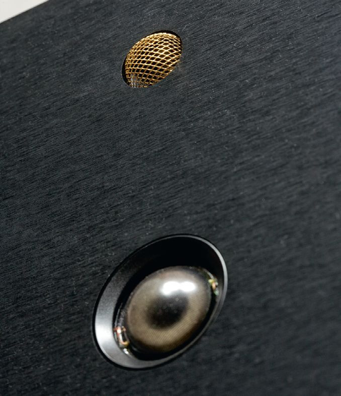 Powyżej zasadniczego głośnika wysokotonowego, czyli 28-mm jedwabnej kopułki, zainstalowano bowiem coś jeszcze mniejszego - "ultrasoniczny generator" (tak nazywa go producent), czyli wstęgowy przetwornik superwysokotonowy, mający działać powyżej 22 kHz, aż do 100 kHz... Czy to możliwe?