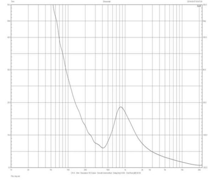 Jednocześnie w zakresie niskich częstotliwości impedancja ma bardzo wysoką wartość, tam bowiem działa aktywna sekcja niskotonowa, która z zasadzie nie czerpie prądu i mocy z zewnętrznego wzmacniacza; minimum przy 400 Hz ma wartość ok. 6 omów, zatem tam pobór mocy przez Monitisy będzie relatywnie największy (biorąc pod uwagę spektrum mocy w typowym sygnale muzycznym), a nie w zakresie wysokotonowym, mimo że poziom impedancji jest tam znacznie niższy. W takiej sytuacji ustalenie impedancji znamionowej też nie jest łatwe... Można by wziąć pod uwagę owo 6-omowe minimum przy 400 Hz i zadeklarować impedancję znamionową 6 albo nawet i 8 omów, ale w specyfikacji producenta przeczytamy, że wynosi ona 4 omy - które trudno do czegokolwiek odnieść.