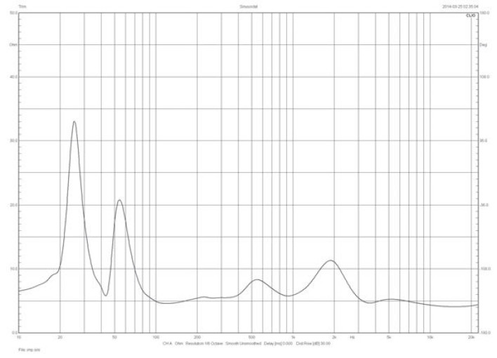 Maskownica dodaje trochę nierównomierności, ale proszę samemu sprawdzić, w jakim stopniu będą one słyszalne. Minimum charakterystyki impedancji w zakresie niskotonowym ma wartość ok. 4,5 ohm (przy 120 Hz), co pozwala naciągnąć impedancję znamionową do standardu 6 ohm, ale już nie do 8 ohm (jak podaje producent); w każdym razie jest to łatwe obciążenie dla wzmacniacza.