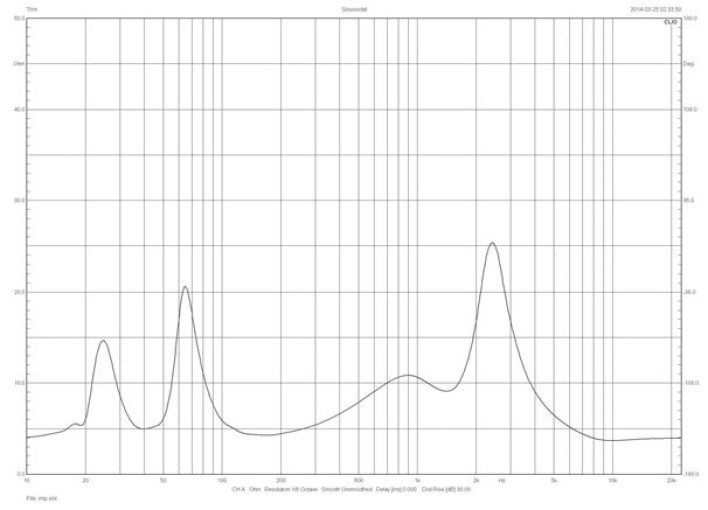 Średni poziom czułości dla całego przetwarzanego pasma wynosi ok. 86 dB. Charakterystyka impedancji ma minimum w zakresie niskich częstotliwości na poziomie ok. 4 ohm. Tak też powinna zostać zadeklarowana impedancja znamionowa, ale nie należy w tym wypadku straszyć "trudnym obciążeniem".