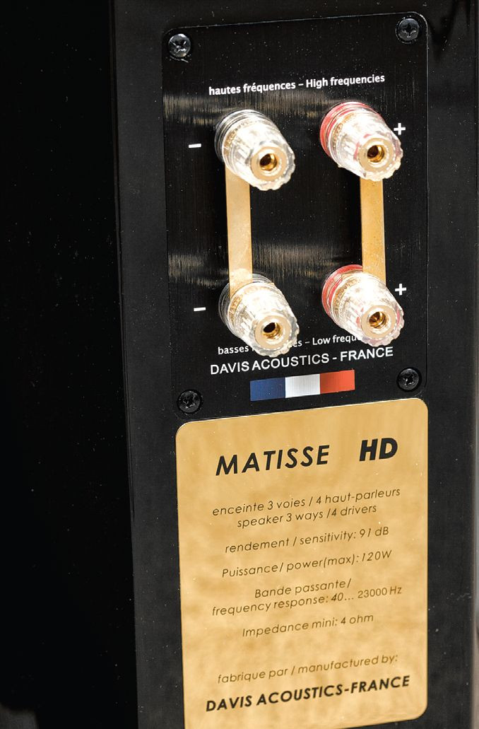 W kolumnach Davis Matisse HD zastosowano standardową, 25-mm kopułkę tekstylną, prawdopodobnie produkt Seasa (już dawniej Davis uwzględniał wysokotonowe Seasy w wielu swoich projektach do samodzielnego montażu, skupiając się bardziej na własnych przetwornikach nisko-średniotonowych).