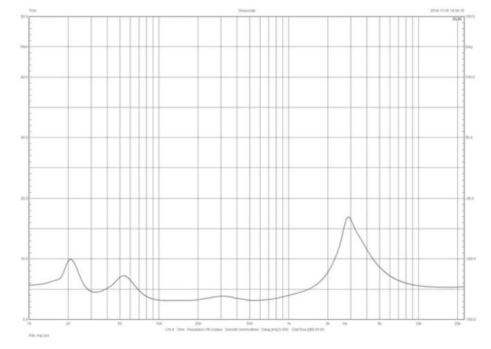 Czułość wynosi 86 dB, nie jest więc wysoka, jak na tak wybujałą konstrukcję, ale nie jest to poziom problematyczny. Charakterystyka impedancji nie dostarcza sensacyjnych informacji o konstrukcji i cechach użytkowych. W zakresie od 100 Hz do 600 Hz, w kilku miejscach, pojawia się minimalna wartość ok. 3 omów, stąd impedancja znamionowa to 4 omach. Bas-refleks dostrojono do ok. 30 Hz, wierzchołki sąsiadujące ze wskazującym tę częstotliwość minimum są dość niskie, a zmienność impedancji w całym pasmie niewielka, więc Liszt nie będzie, mimo owych 3-omowych minimum i umiarkowanej czułości, szczególnie trudnym obciążeniem.