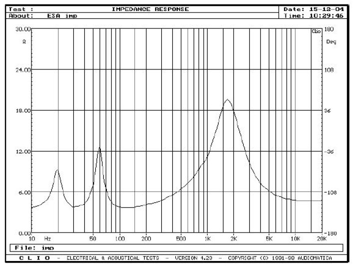Charakterystyka impedancji (rys. 1) Credo ma bardzo mało cech szczególnych; w zakresie niskich częstotliwości widać dwa (relatywnie niskie) szczyty właściwe dla obudowy bas-refleks, w zakresie średnich częstotliwości jedno wysokie maksimum, którego zbocza są jednak dość łagodne - objaw zastosowania niezbyt skomplikowanych filtrów. Taki kształt charakterystyki nie ujawnia nawet, że mamy do czynienia z układem dwuipółdrożnym - równie dobrze pasował- by do dwudrożnego. Charakterystyka impedancji osiąga najniższy poziom przy 30Hz i w zakresie 100-150Hz - o wartości 3,5Ω, jest to więc konstrukcja o impedancji znamionowej 4Ω.