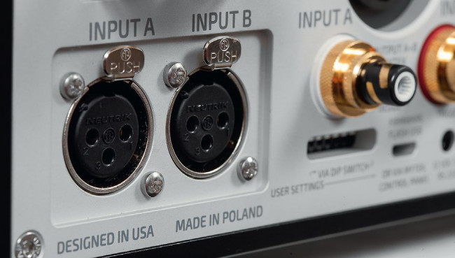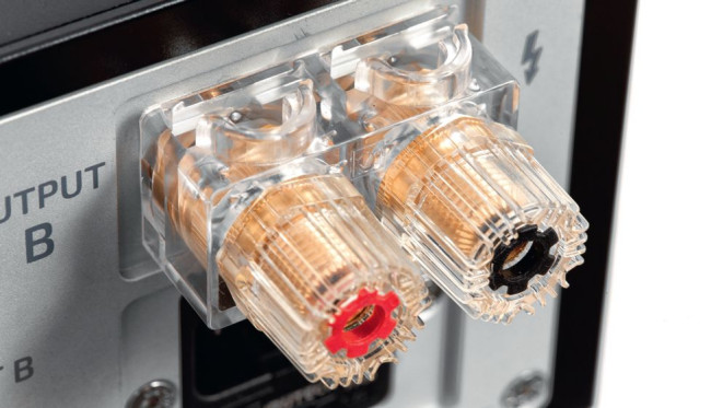 Opisy naniesione przy gniazdach też są nietypowe; zamiast oznaczeń kanałów lewego i prawego, zarówno przy wejściach (gniazdach XLR i RCA), jak i wyjściach głośnikowych, znajdują się litery A i B; oczywiście nic nie stoi na przeszkodzie, aby kanał A stał się kanałem lewym, a kanał B – prawym.