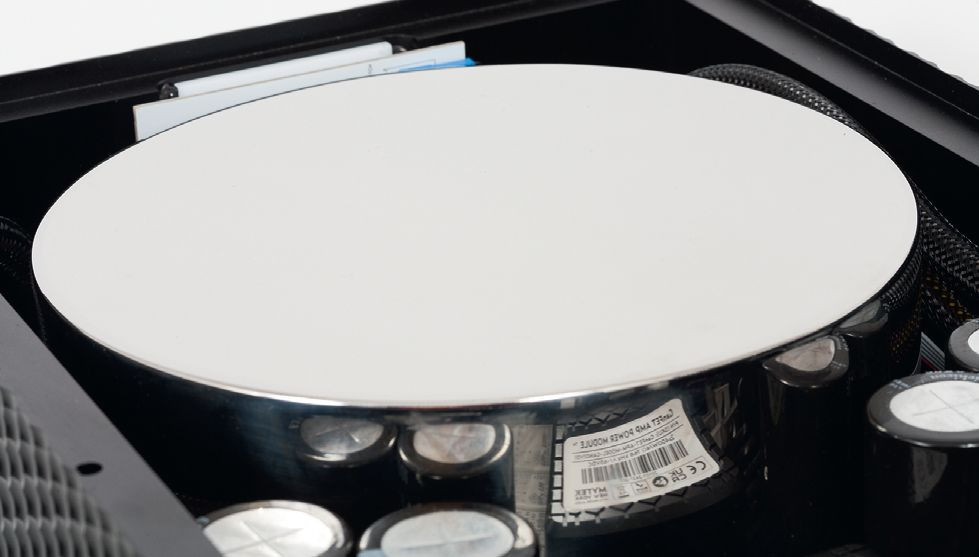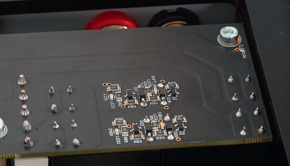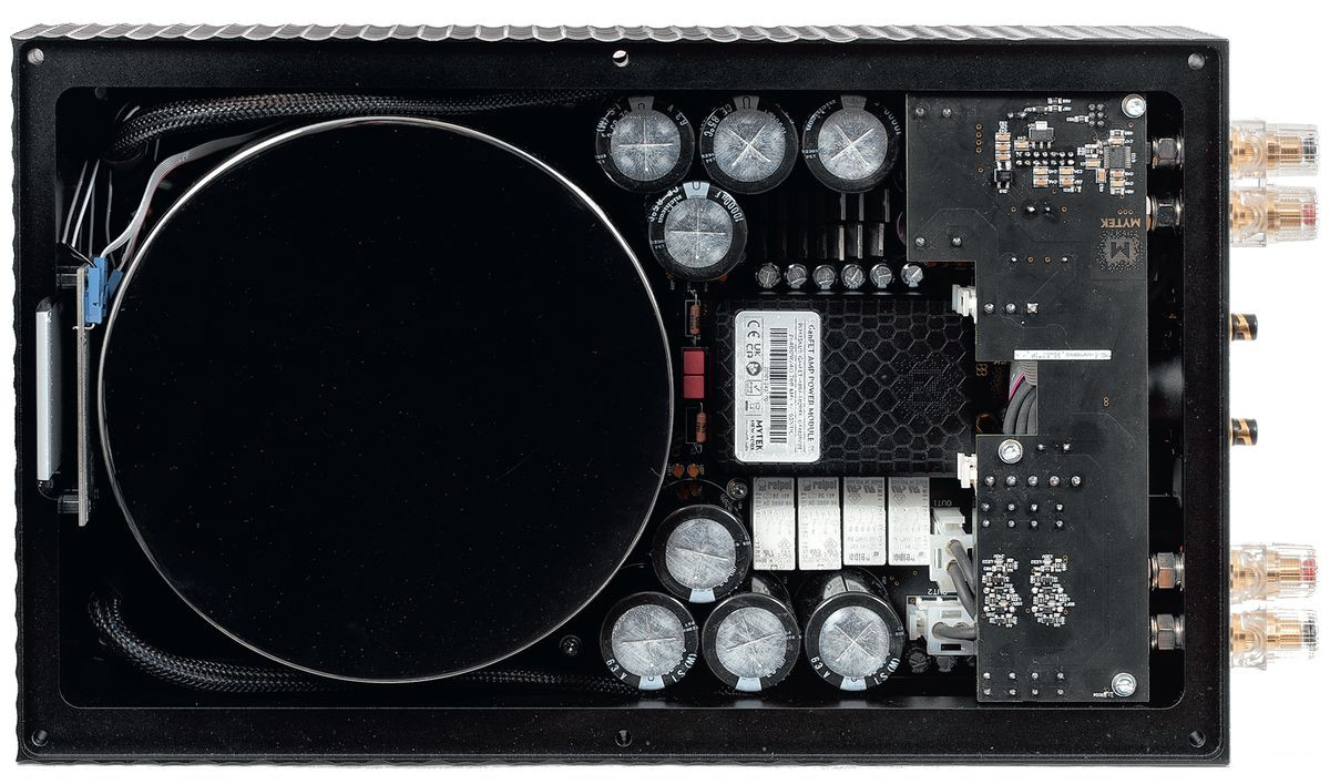 Zasilacz jest układem liniowym, opartym na potężnym, zajmującym połowę obudowy, zaekranowanym transformatorze toroidalnym. Moduł wzmacniający ma formę dodatkowej, niewielkiej puszki (podstawa niewiele większa od karty kredytowej), zainstalowanej do głównej płytki i (prawdopodobnie) przykręconej do dolnej części obudowy, która wspomaga chłodzenie.