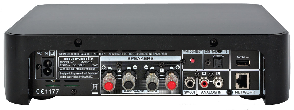 Marantz ma wbudowany protokół Airplay, którym w wygodny sposób prześlemy muzykę z niemal dowolnego mobilnego urządzenia Apple. Port LAN (oraz Wi-Fi) działa także w najpopularniejszym standardzie DLNA; komputery, serwery, dyski sieciowe – wszystko to stoi przed nami otworem.