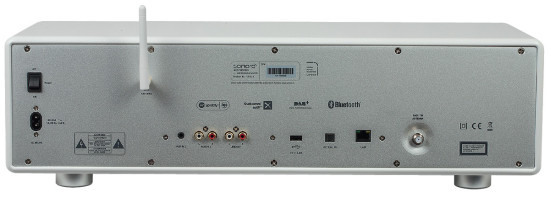 Sonoro Meisterstück może także połączyć się ze źródłami zewnętrznymi. Przygotowano dwa wejścia liniowe (jedno RCA i jedno mini-jack), liniowe wyjście, cyfrowe wejście optyczne (np. dla telewizora) i złącze USB. Wszystkie te gniazda, a także zacisk dla anten FM/DAB/Wi-Fi oraz złącze sieci LAN, zainstalowano na tylnej ściance.