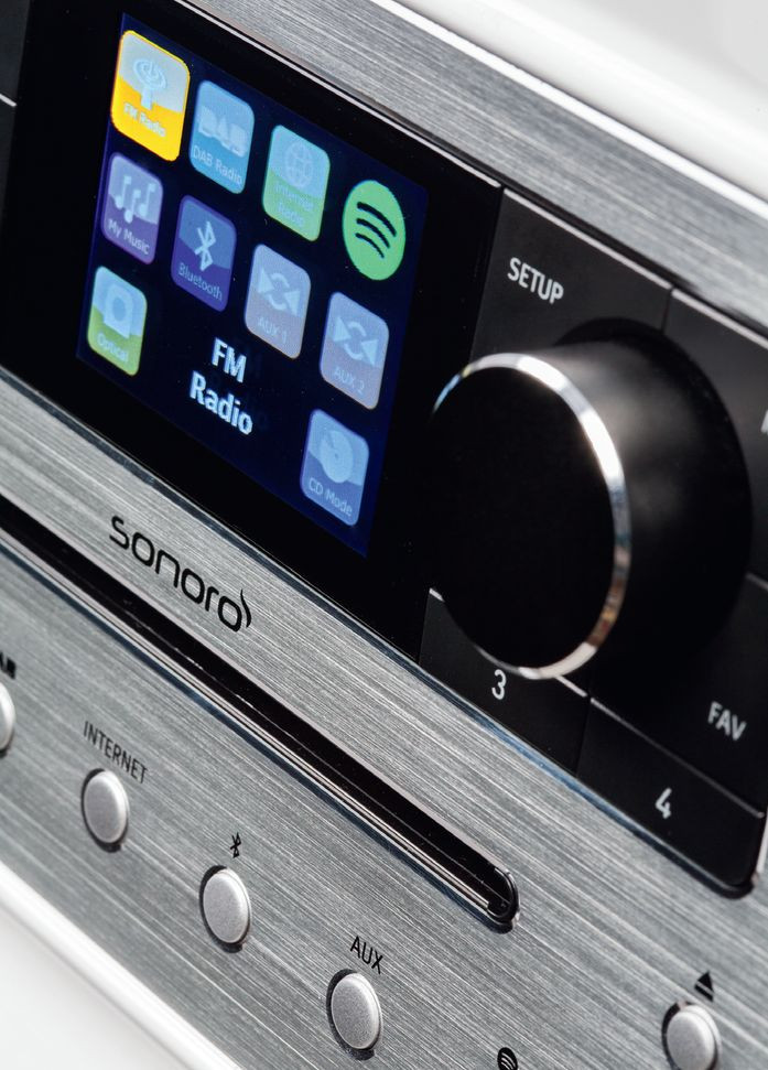 Sonoro Meisterstück ma wbudowane tunery radiowe FM oraz DAB+. Moduł sieciowy można natomiast wykorzystać do słuchania internetowego radia lub muzyki z popularnego serwisu Spotify.