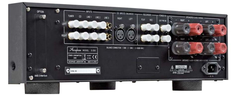 Z fabryki Accuphase E-250 przyjeżdża z zaślepką (chyba, że zażyczymy sobie inaczej, zamawiając wzmacniacz już w rozszerzonej specyfikacji). Później można dokupić jeden z trzech modułów. Najmniej kuszący wydaje się model Line-10, będący zwykłym wejściem liniowym, aż siódmym z kolei.