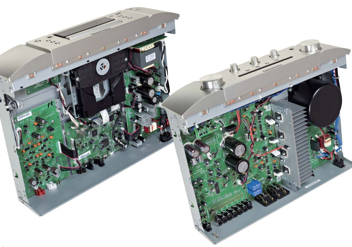 Podział układów na trzy główne moduły wokół transportu wygląda bardzo porządnie. Przetwornik obsługuje sygnał DSD, lecz napęd to czytnik w standardzie CD. Konstrukcja wzmacniacza jest przejrzysta, bez ekstrawaganckich rozwiązań i komplikacji układowych, z rozdzielonymi strefami dla zasilacza i elementów audio i ze sprawdzonymi tranzystorami Sankena w końcówce.