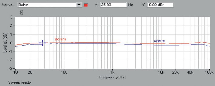 Ponad 50-procentowy wzrost na impedancji 4-omowej względem 8-omowej zasługuje na uwagę i uspokaja, że wzmacniacz ten dobrze radzi sobie z niskimi impedancjami.
