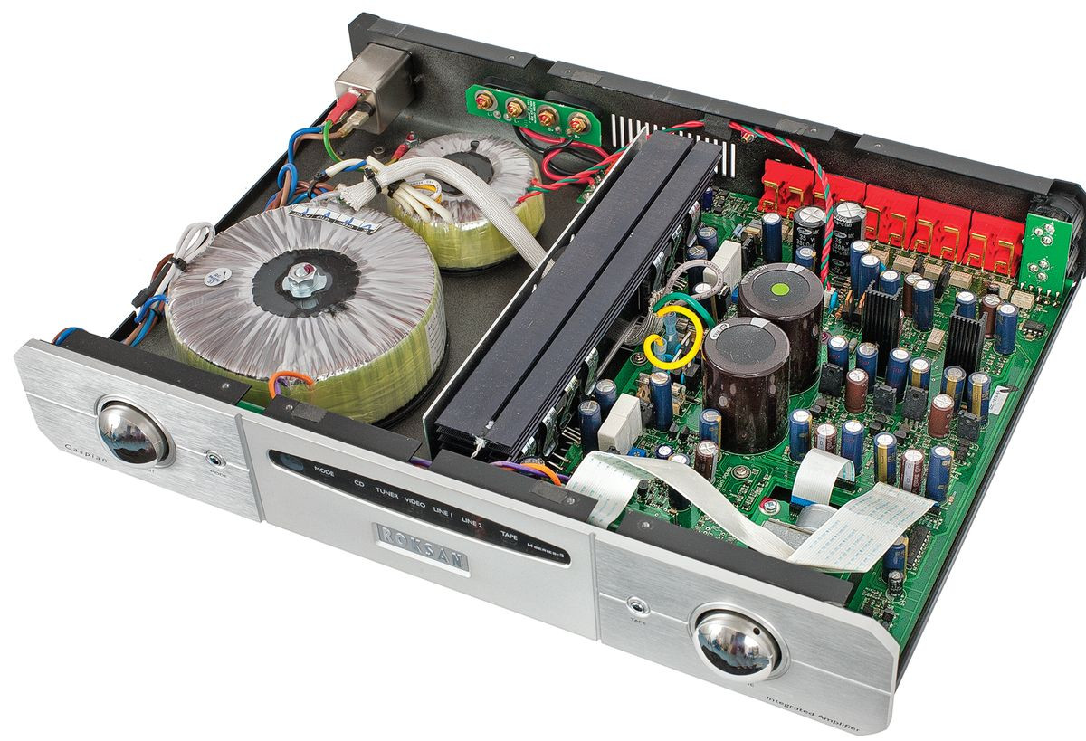 Niemal połowę przestrzeni wewnątrz obudowy zajmuje zasilacz oparty na dwóch transformatorach toroidalnych; większy pracuje na rzecz obwodów związanych z sygnałami audio, mniejszy jest dla obwodów sterowania.