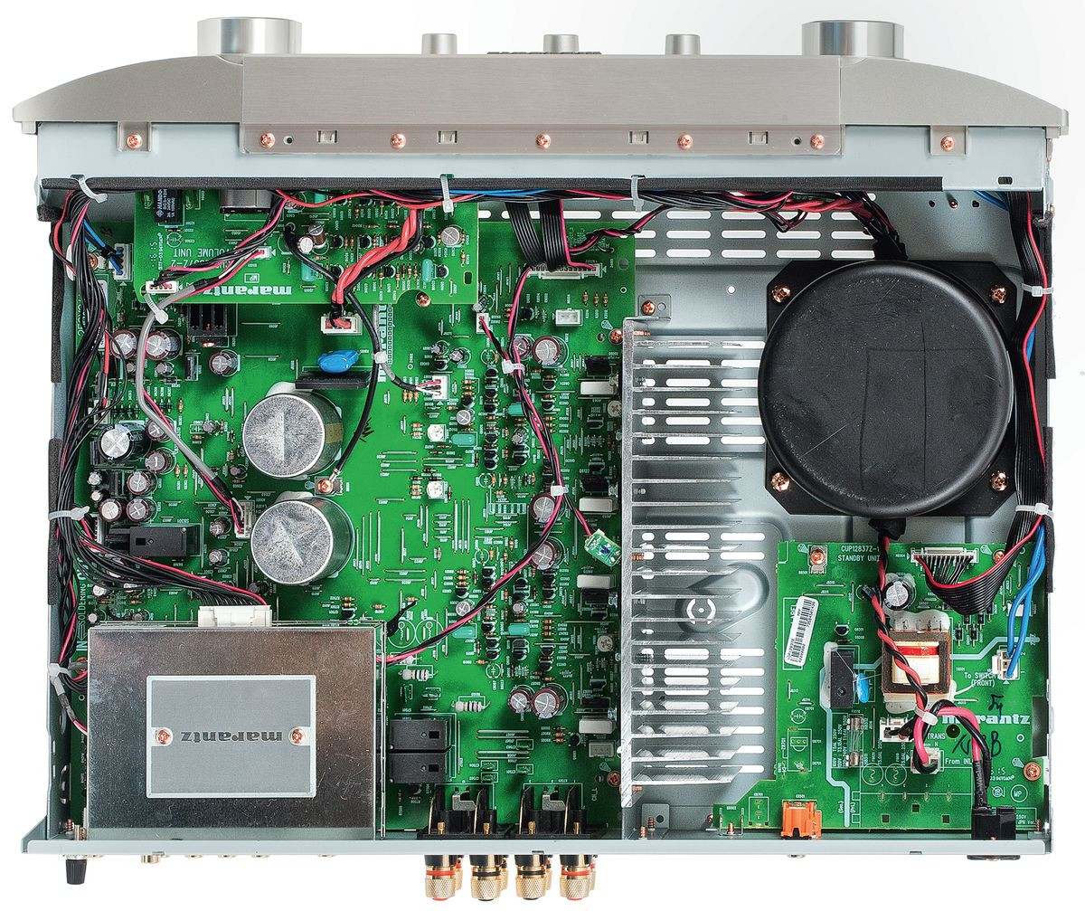 Obwody sekcji audio i elementy zasilacza rozdziela radiator końcówek mocy. Konstrukcja końcówek mocy nie zmieniła się znacząco od czasów PM6005, bazuje na dwóch parach tranzystorów Sanken.
