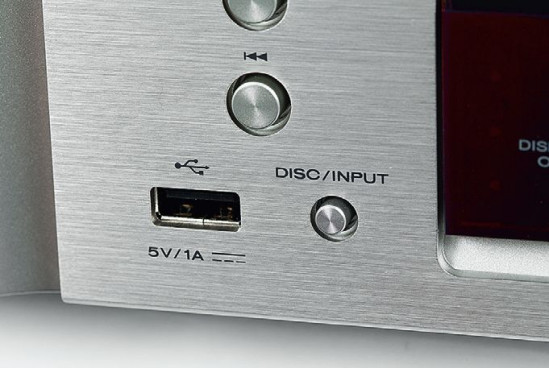 Szuflada wraz z wyświetlaczem znajdują się w centrum, na przednim panelu ulokowano przyciski większości funkcji związanych z działaniem napędu; jest też wyjście słuchawkowe (6,3 mm) z regulacją wzmocnienia, gniazdko USB i selektor trybów pracy/ źródeł.