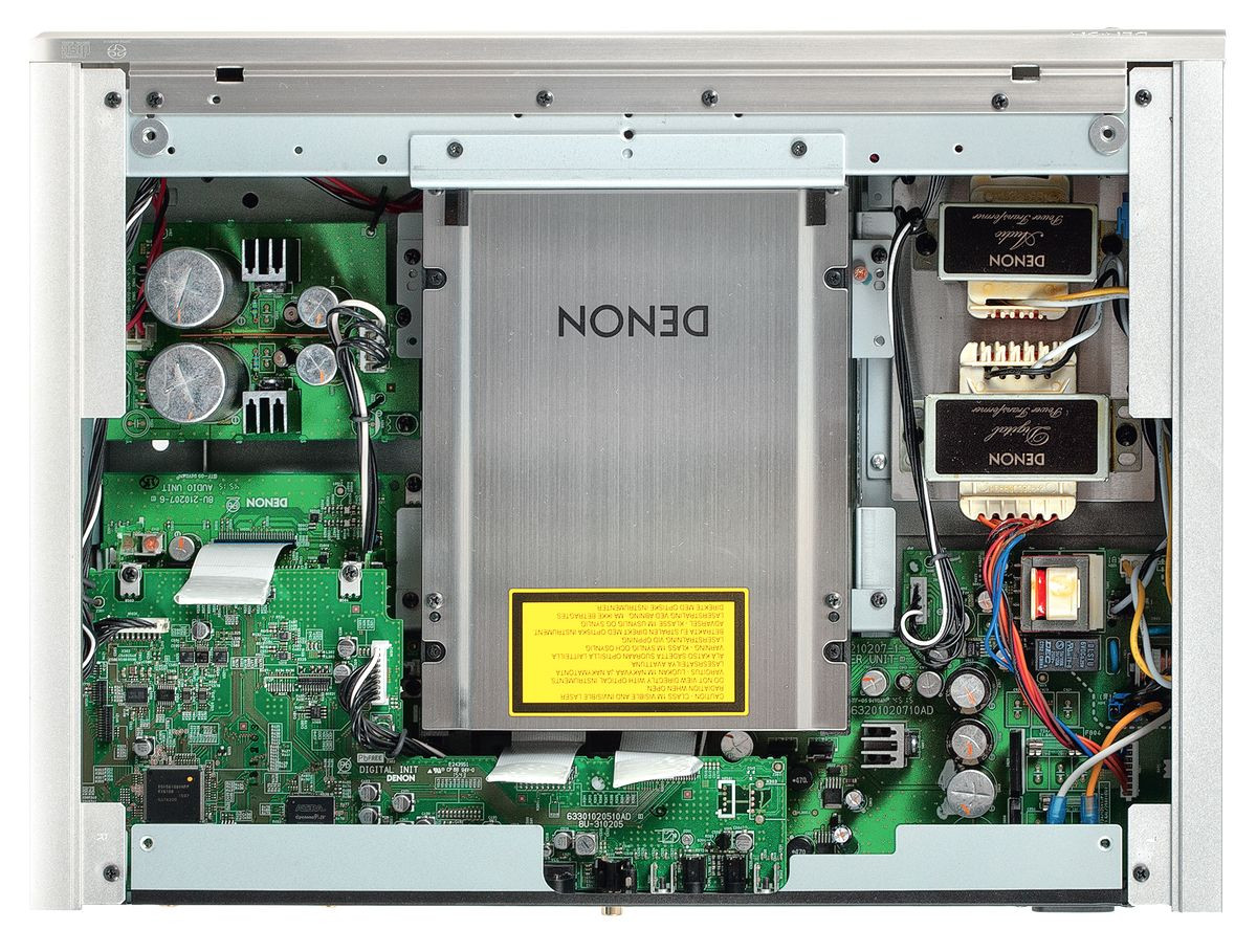 Wnętrze obudowy rozplanowano tak, by drgania od mechanizmu i transformatorów były wytłumiane i nie wpływały na podzespoły audio, części cyfrową i analogową.
