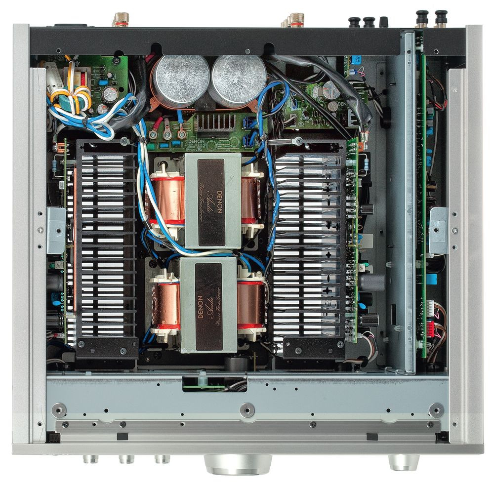 Wykonano pełny układ dual-mono posługując się dwoma transformatorami. Zupełnie niezależne są końcówki mocy ulokowane na dwóch pokaźnych modułach, każdy z własną płytką drukowaną (kompletem układów) oraz radiatorem. Zwykle występuje (we wzmacniaczach o takiej mocy) kilka par tranzystorów mocy, tymczasem Denon posłużył się tylko jedną w układzie (pojedynczego) push-pull. Aby osiągnąć wysoką moc wyjściową, wybrano tranzystory MOSFET o dużym potencjale prądowym.