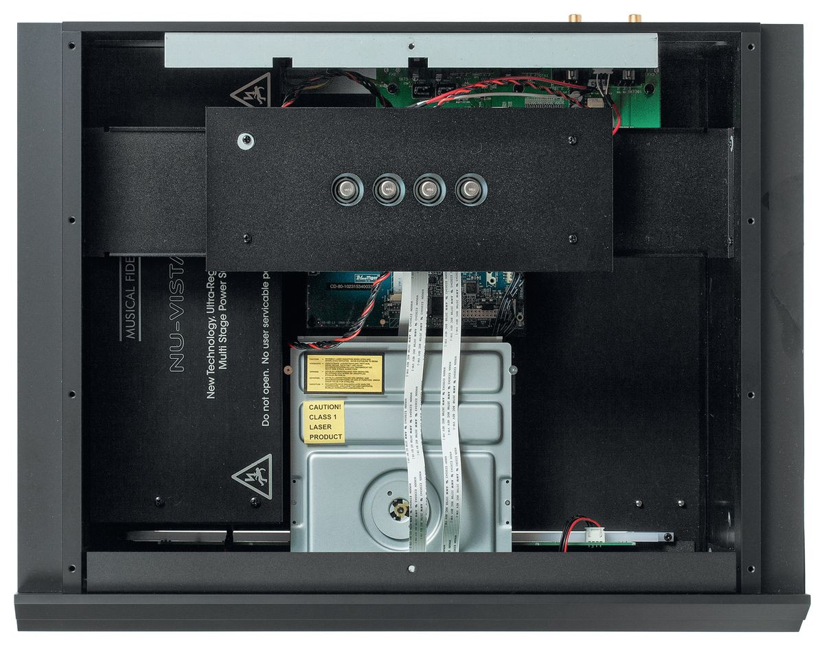 Musical Fidelity sięgnął po napęd austriackiej firmy Stream Unlimited, na której modułach chętnie bazują dzisiaj konstruktorzy wielu źródeł. Zasilacz jest rozbudowany, wielostopniowy, z kilkoma sekcjami stabilizacji, zamknięty w podłużnej, metalowej skrzynce, by nie wpływał negatywnie na pobliskie obwody.