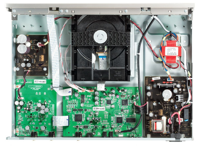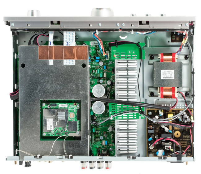 Moduł HEOS to prawdopodobnie taki sam układ, jaki Denon stosuje w wielu innych urządzeniach, jednak podobnie jak w przypadku Marantza, który już z niego korzysta, został zamknięty w metalowym ekranie. Obok ulokowano przedwzmacniacz gramofonowy oraz całą sekcję przedwzmacniacza liniowego.
