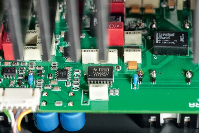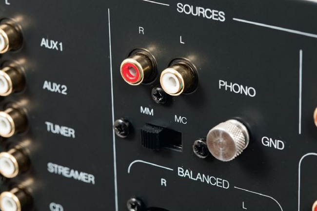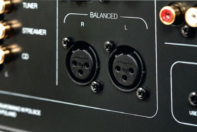 Zadbano również o krótką ścieżkę sygnałową rozmieszczając w optymalny sposób poszczególne moduły. Niemal cały blok przedwzmacniacza znajduje się z tyłu. Umieszczono tam nie tylko przełącznik wejść, desymetryzację sygnałów z gniazd XLR, ale także regulator głośności – nowoczesny układ scalony Burr Brown PGA23201.