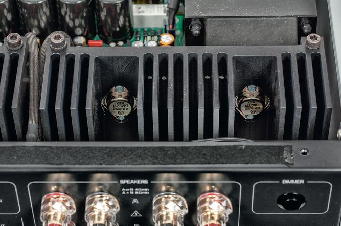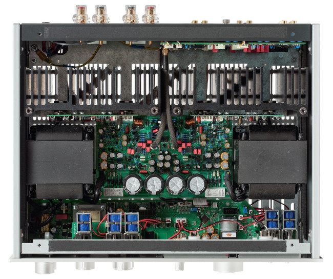 Zgodnie ze schematem blokowym, regulacje barwy znajdują się tuż obok i są całkowicie pomijane, gdy ustawimy tryb Linear. Natomiast płytki, które widzimy z przodu, to tylko układy sterujące, wysyłające instrukcje do modułu przedwzmacniacza. Stąd już bardzo blisko do końcówek mocy, do których sygnał trafia krótkimi, ekranowanymi przewodami.