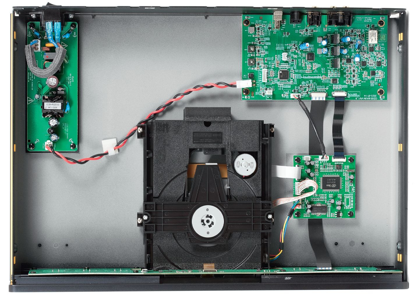 ESS ma już nowsze i jeszcze lepsze przetworniki, ale ES9018K2M nadal kusi swoimi możliwościami (i umiarkowaną ceną), jest jak najbardziej odpowiedni do odtwarzacza tej klasy. Impulsowy zasilacz umieszczono na niewielkiej płytce tuż za gniazdem 230 V.