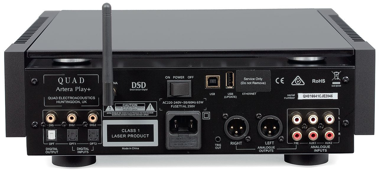 Quad Arterę Play+ można uznać za bardzo rozbudowany odtwarzacz CD, zaznaczając jego kompetencje w roli DAC-a i analogowego przedwzmacniacza – czyli urządzenia przyjmującego z zewnątrz sygnały cyfrowe i analogowe.