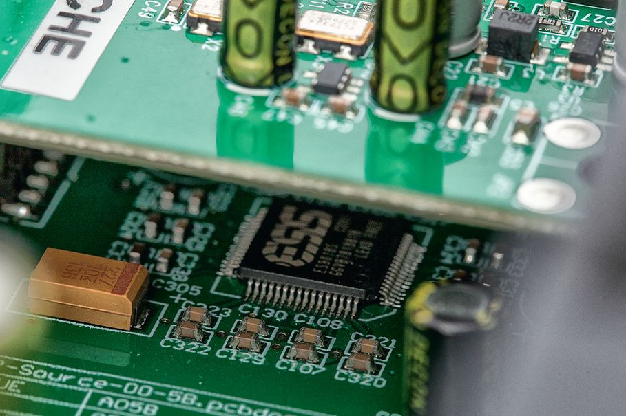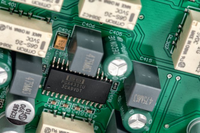 Sekcja gramofonowa opiera się na układach scalonych (są tam wysokiej jakości wzmacniacze operacyjne Analog Devices LT1115) i precyzyjnych elementach pasywnych (korekcja RIAA). Sygnały ze wszystkich wejść trafiają do przekaźników. Nowoczesna regulacja głośności (przez panel dotykowy) wymagała adekwatnych rozwiązań układowych.