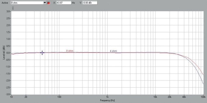 Nie wymagajmy jednak zbyt wiele od tak kompaktowej końcówki mocy w klasie AB; układ skalibrowano do osiągania wysokiej mocy już przy 8 Ω, nie mógł więc zachować się jak idealne źródło napięciowe. Nie musimy obawiać się podłączania kolumn 4-omowych, chociaż ”najtrudniejsze” impedancje, np. o spadkach do 2 Ω i dużych kątach fazowych, nie będą przez Arterę lubiane.