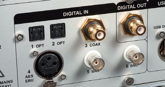 Każdy z kanałów (lewy i prawy) ma dwa zestawy wyjść (w każdym RCA i XLR), oddzielnie dla sekcji PCM i DSD (ta może zostać skonfigurowana do pracy we wszystkich formatach).