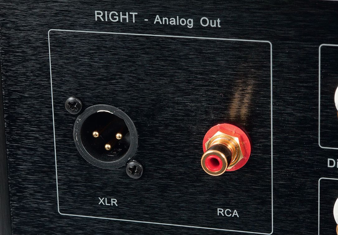 Do dyspozycji są dwa komplety wyjść analogowych - RCA oraz XLR - wybierane przełącznikiem hebelkowym.