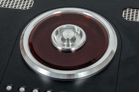 Przyciski są osadzone w podświetlonych na czerwono pierścieniach. Sam mechanizm wymaga użycia dwóch krążków. Wewnętrzny dociska (za pomocą zestawu magnesów) płytę do talerzyka na głównej osi napędu, a górny pełni rolę pokrywy. Ładowanie płyty do CD-10 przebiega wieloetapowo, zajmuje więcej czasu niż użycie szufl ady (a tym bardziej mechanizmu szczelinowego), ale można w tym znaleźć przyjemność, a potem się tym zmęczyć... albo odwrotnie.