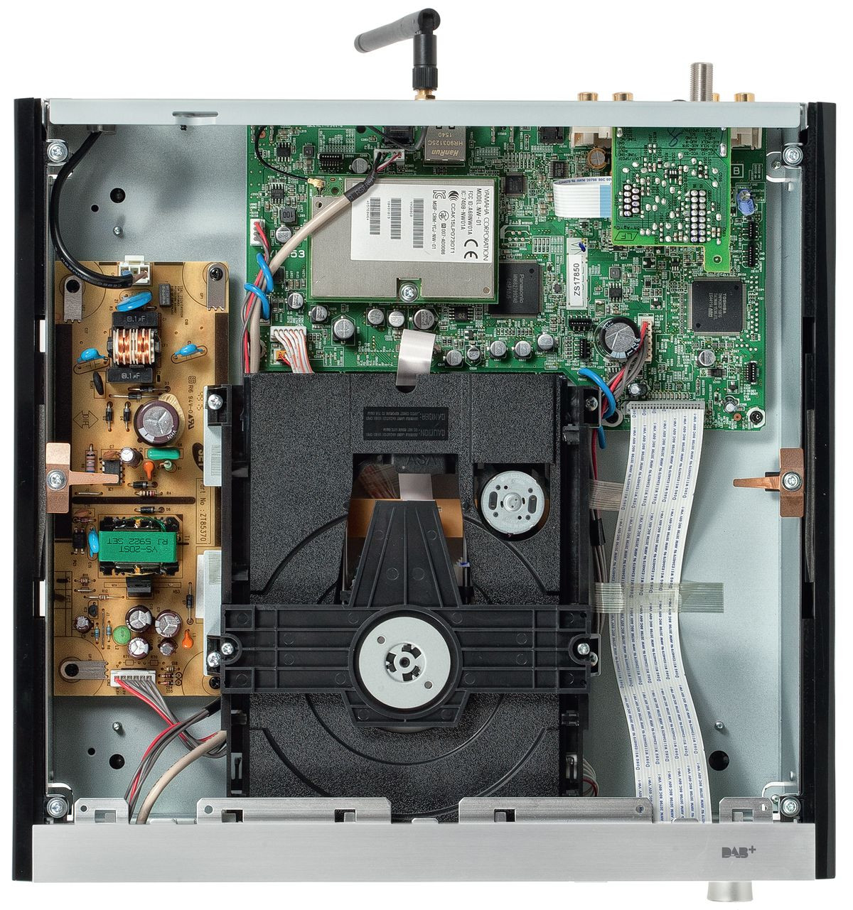 Yamaha CD-NT670D oddaje do dyspozycji również tuner radiowy, zarówno analogowy FM, jak i cyfrowy DAB, a ponadto układ Bluetooth. Pewną słabością 670-ki jest brak cyfrowych wyjść. Układy wewnątrz podzielono na trzy sekcje: zasilającą, mechanizmu odczytu płyt oraz elektronikę audio. Przetwornik cyfrowo-analogowy to popularny Burr Brown PCM5101A - "środkowy" model z rodziny PCM510x.