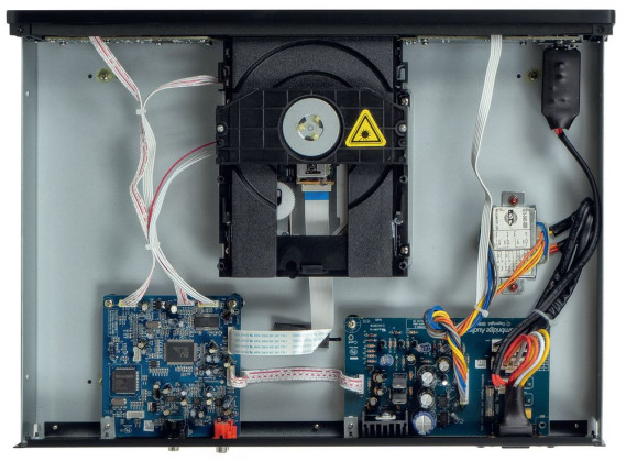 Poszczególne podzespoły połączono ze sobą taśmami. Wspominając o redukcji przewodów, producent miał zapewne na myśli połączenia w ramach obwodów odpowiedzialnych za sygnały audio, bo faktycznie niemal wszystko odbywa się tutaj w jednym module.