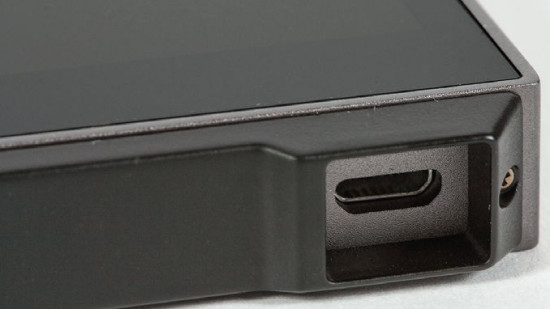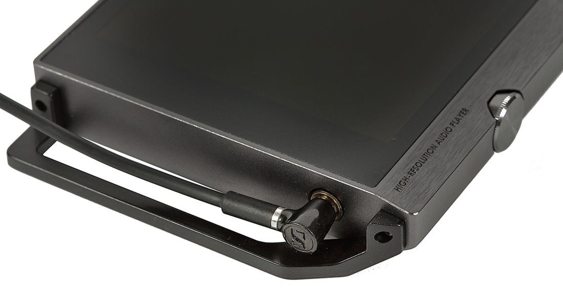 Pokrętło regulacji głośności wkomponowano w boczną ściankę, nieopodal dojrzymy napis "High Resolution Audio Player". Po drugiej stronie rozmieszczono cztery klawisze: włącznik zasilania (działa w dwóch trybach, zgrubnie włącza i wyłącza odtwarzacz, a na co dzień tylko go usypia i budzi) oraz trzy typowe funkcje odtwarzacza - przeskakiwanie do sąsiednich ścieżek i uruchamianie/pauzowanie muzyki.