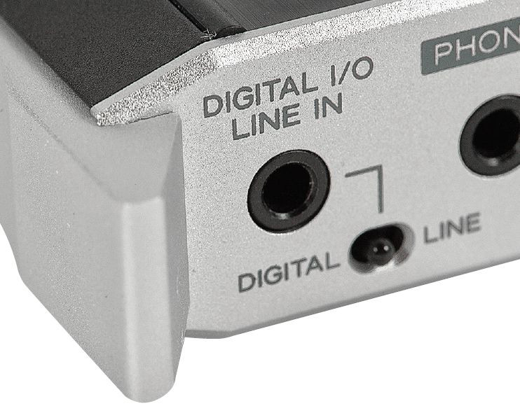 Gniazdo mini-jack pełni kilka funkcji, może być wejściem, wyjściem, pracuje w trybach cyfrowym (współosiowym/optycznym) i analogowym.