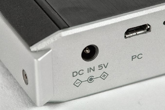 Obok wyjścia słuchawkowego mamy wielofunkcyjne gniazdo mini-jack, mogące pełnić rolę wejść i wyjść (analogowe/cyfrowe), a z drugiej strony obudowy dwa wejścia USB i gniazdo zasilające.