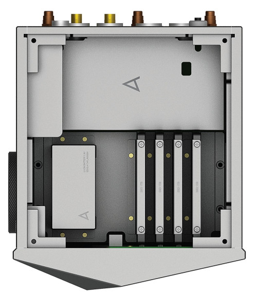 Wyjątkowość źródła Astell&Kern polega na tym, że nie jest tu konieczny żaden zewnętrzny serwer, bo odtwarzacz sam może nim być. Wewnątrz obudowy przygotowano stosowną elektronikę sterującą oraz aż cztery kieszenie dla czterech dysków twardych.