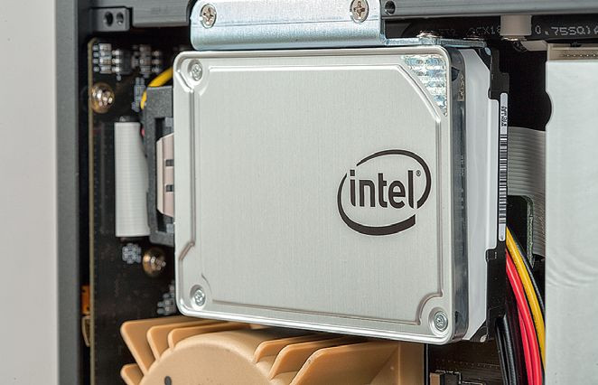 We wnętrzu Aurendera A100 widać sporo konotacji komputerowych. Przypomina je cała sekcja procesorów z blokiem chłodzenia, nieopodal widać charakterystyczną aranżację dysków twardych - to ułożone piętrowo jednostki 2,5 cala, dysk talerzowy oraz SSD od Intela.