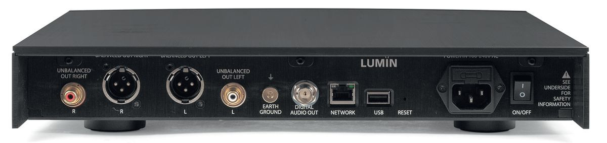 Zaawansowanie odtwarzacza Lumin T2 podkreśla para złącz symetrycznych XLR, jest też para niesymetrycznych, a dla obydwu możliwa jest regulacja poziomu wyjściowego.